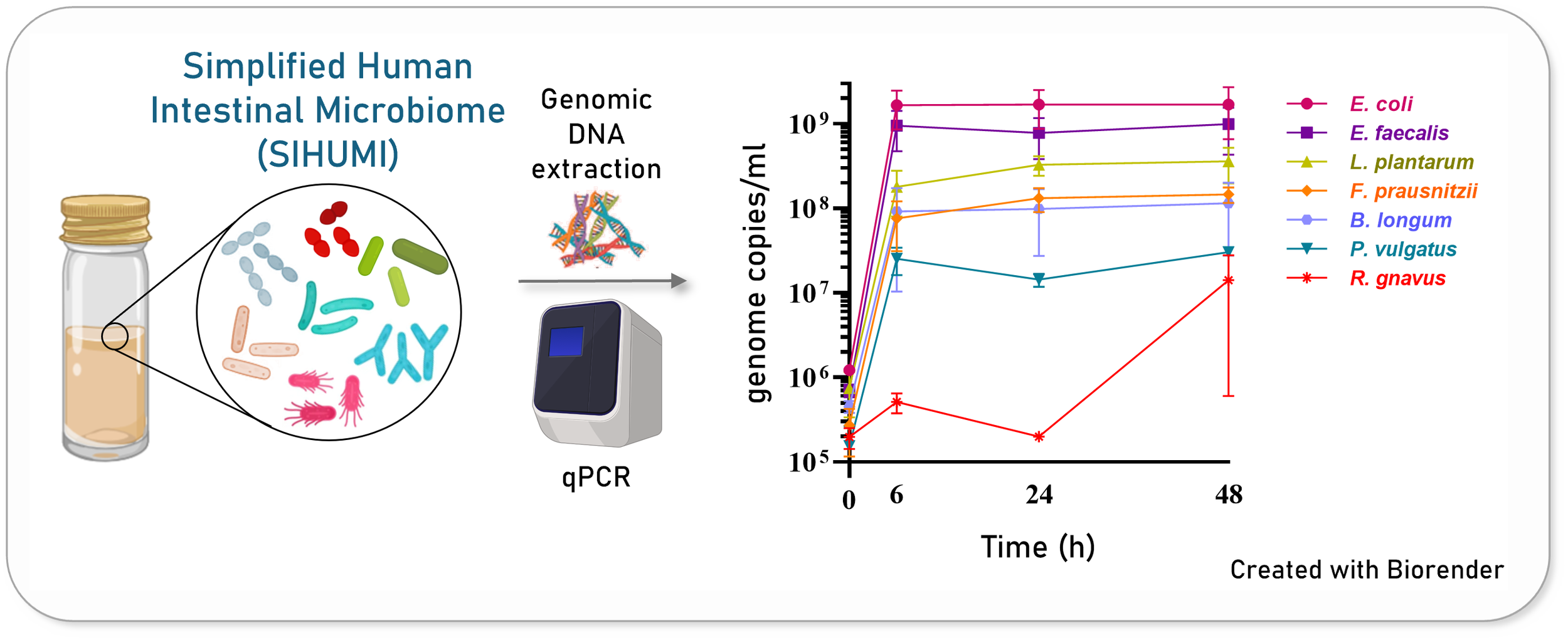Thankfully, in our lab, we work with a Simplified Human Intestinal Microbiome (SIHUMI) model—a defined consortium of bacterial strains isolated from the human gut. SIHUMI allows us to obtain reproducible data in a controlled experimental setting. By including a pathogenic C. difficile strain, we transformed SIHUMI into an in vitro model of CDI.